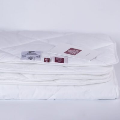 Ткань чехлов произведена известной компанией Weidmann (Зюссен, Германия), это – хлопчатобумажный пуходержащий ТИК (Mako-Cambric) с параметрами конструкции Nm 70/40, TC 251 и обладающий всеми свойствами, присущими подобного рода тканям: повышенные – гигроскопичность, плотность, долговечность и воздухопроницаемость. В коллекции используются пуховый наполнитель категории «Экстра» с небольшим добавлением мелкого пера, которое повышает упругость наполнителя и придает изделию необходимый объем.