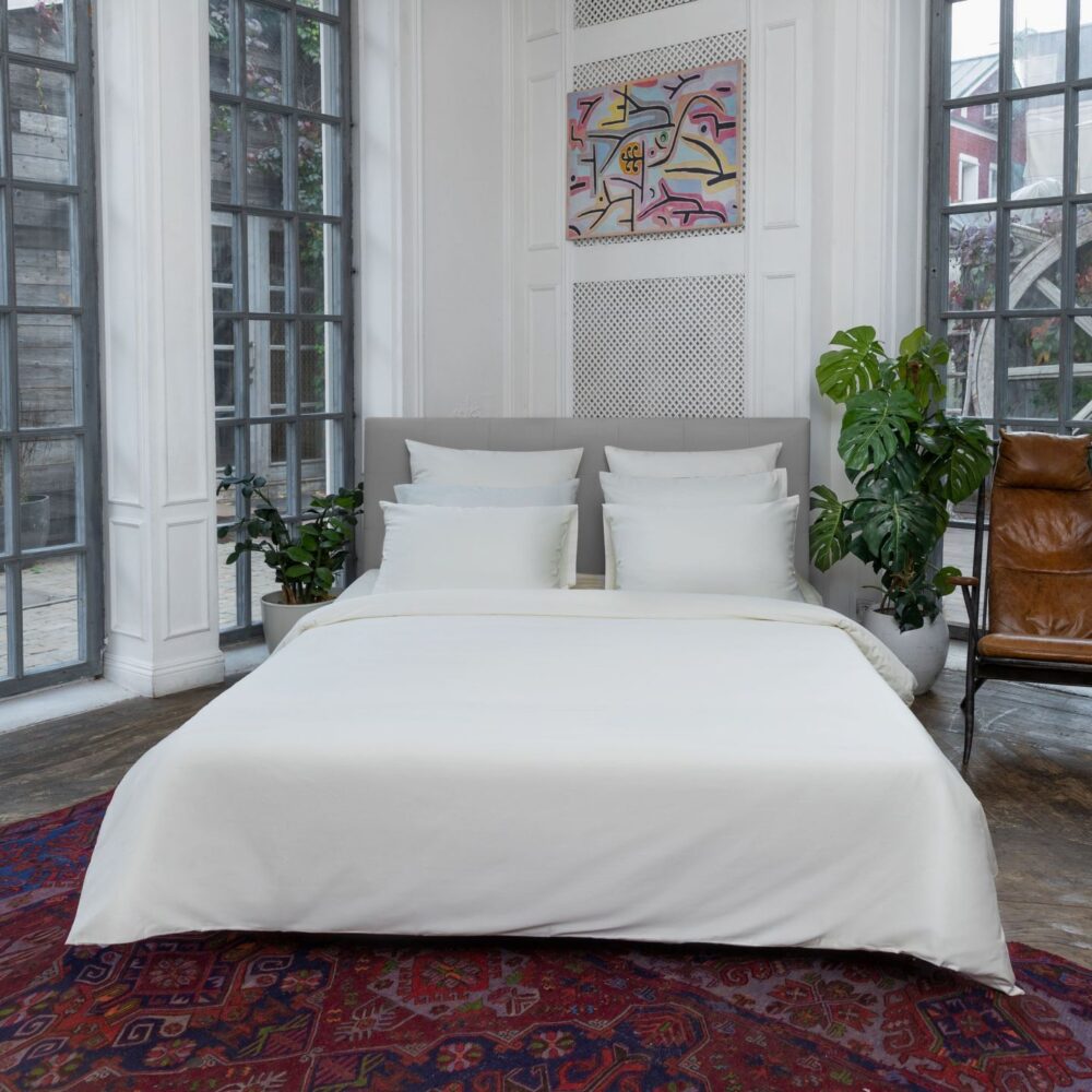 2. Плетение. Мако-сатин 400 ТС (тканевых счетов) — это показатель, указывающий на количество нитей на квадратный дюйм, Чем выше значение, тем плотнее и качественнее ткань, благодаря чему сатин не просвечивает даже на светлых оттенках.