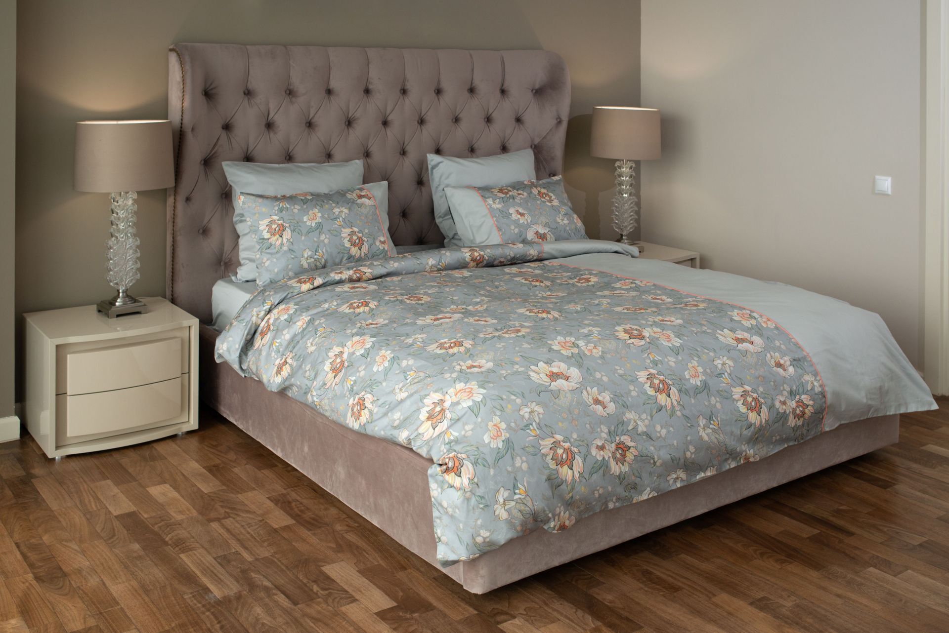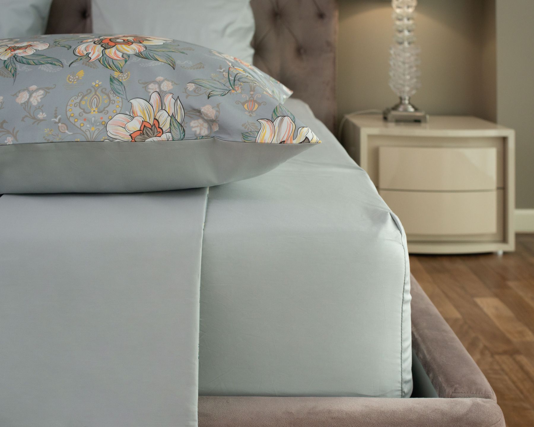 Комплект постельного белья MOLLEN ЛАЗОРЕВЫЙ ЦВЕТОК (светло-серый)
