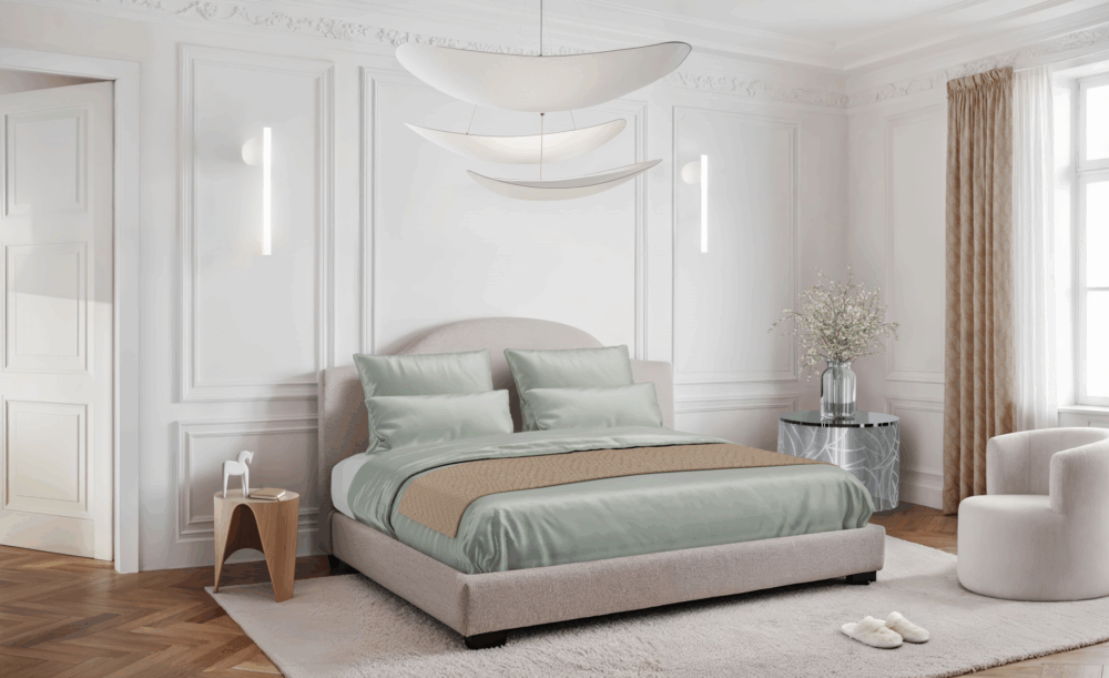 Комплект постельного белья из плотного и легкого мако-сатина (100% Египетский хлопок), нежно касается кожи, хорошо пропускает воздух и сохраняет тепло. Никакого дискомфорта, сползания и статического электричества — только спокойный глубокий сон. Подходит для любого климата и сезона — поддерживает оптимальную температуру и влажность.