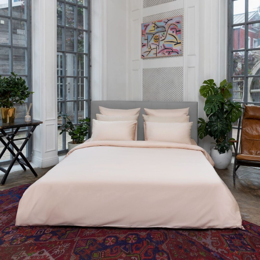 Комплект постельного белья из плотного и легкого мако-сатина (100% Египетский хлопок), нежно касается кожи, хорошо пропускает воздух и сохраняет тепло. Никакого дискомфорта, сползания и статического электричества — только спокойный глубокий сон. Подходит для любого климата и сезона — поддерживает оптимальную температуру и влажность.