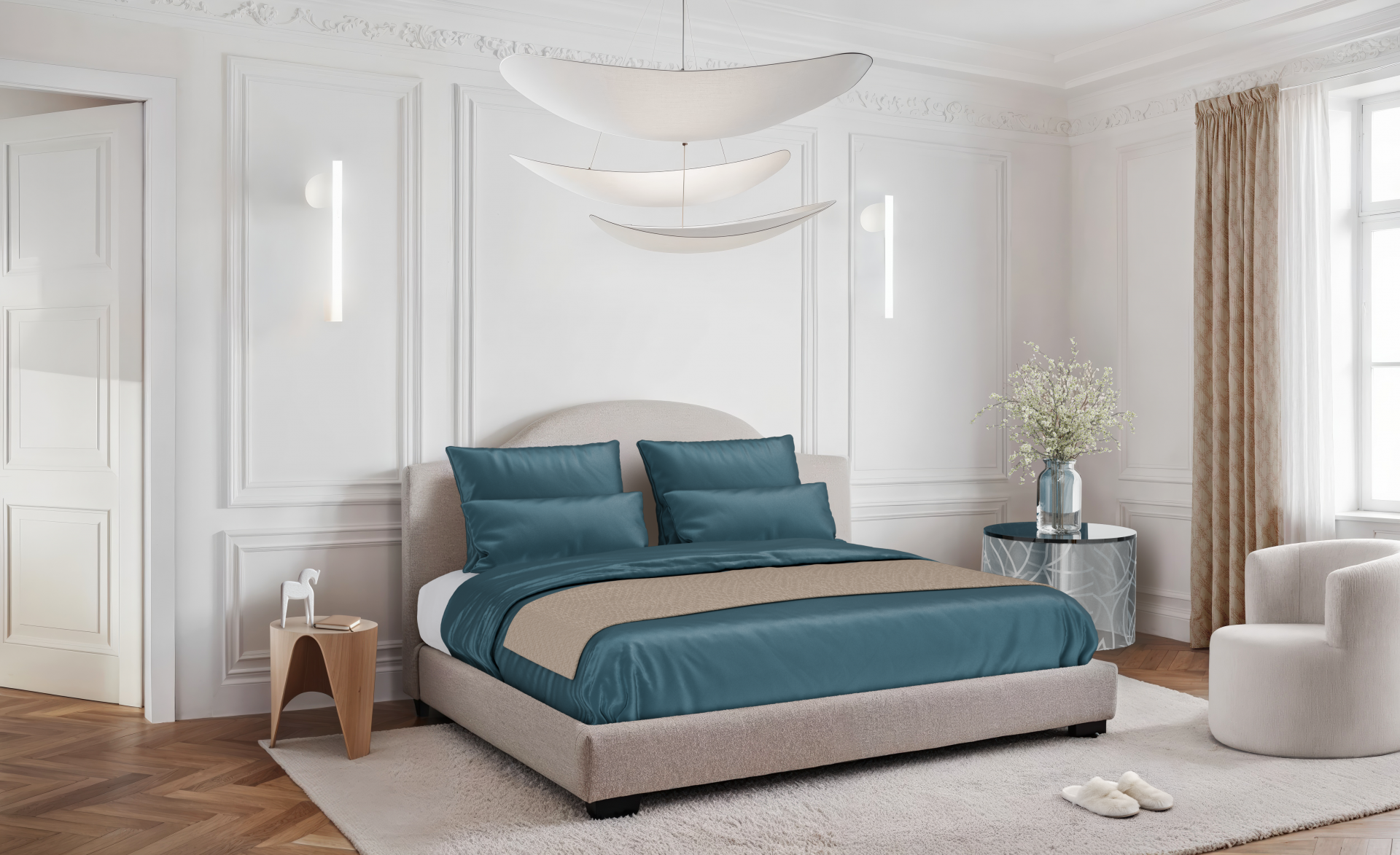 Комплект постельного белья из плотного и легкого мако-сатина (100% Египетский хлопок), нежно касается кожи, хорошо пропускает воздух и сохраняет тепло. Никакого дискомфорта, сползания и статического электричества — только спокойный глубокий сон. Подходит для любого климата и сезона — поддерживает оптимальную температуру и влажность.