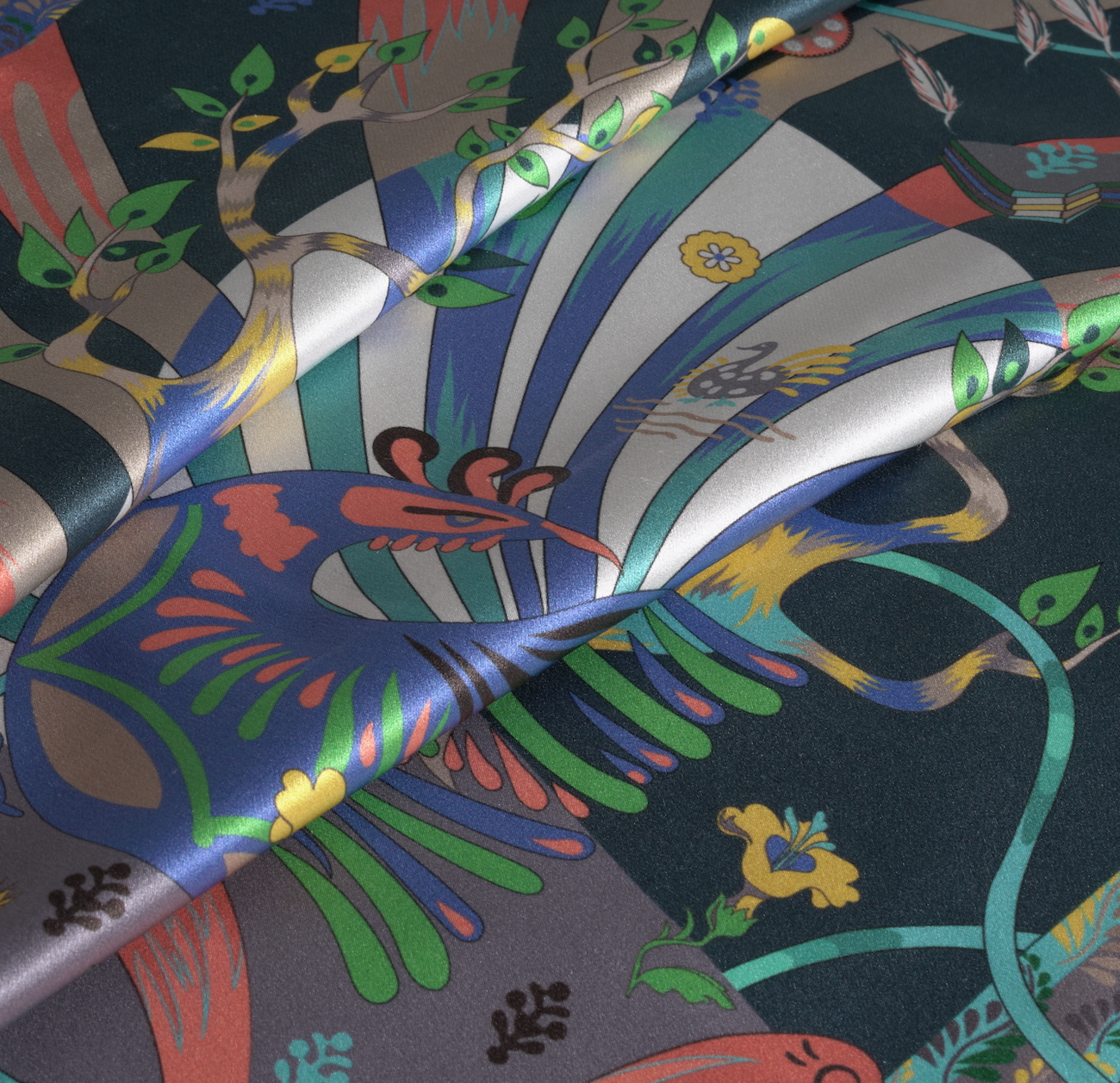 Волшебная птица Алконост, изображенная на ткани, согласно древнерусским преданиям, прилетает на землю из рая, и приносит радость и умиротворение. Чудесное создание порадует вас своей красотой и поможет забыть тревоги и заботы.