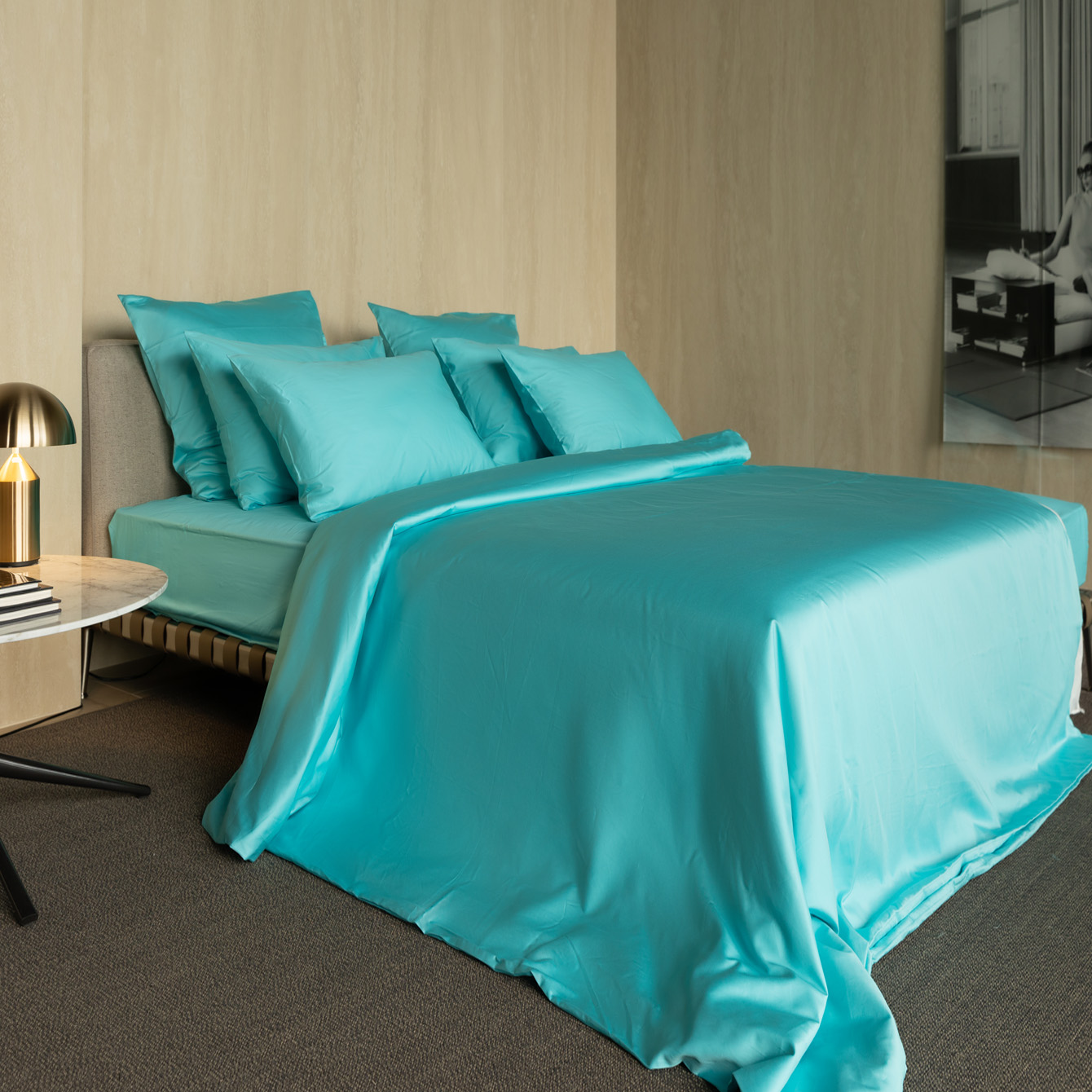 Пододеяльник из люксового сатина, цвет тропической океанской волны фирменной палитры Mollen. Благородный зелено-голубой цвет создает умиротворенное настроение и дарит ощущение покоя перед сном. Засыпая вы словно слышите тихий шум волн на тропическом пляже. Сатин премиального качества создает для вас идеальный микроклимат и максимально комфортную температуру и влажность.
