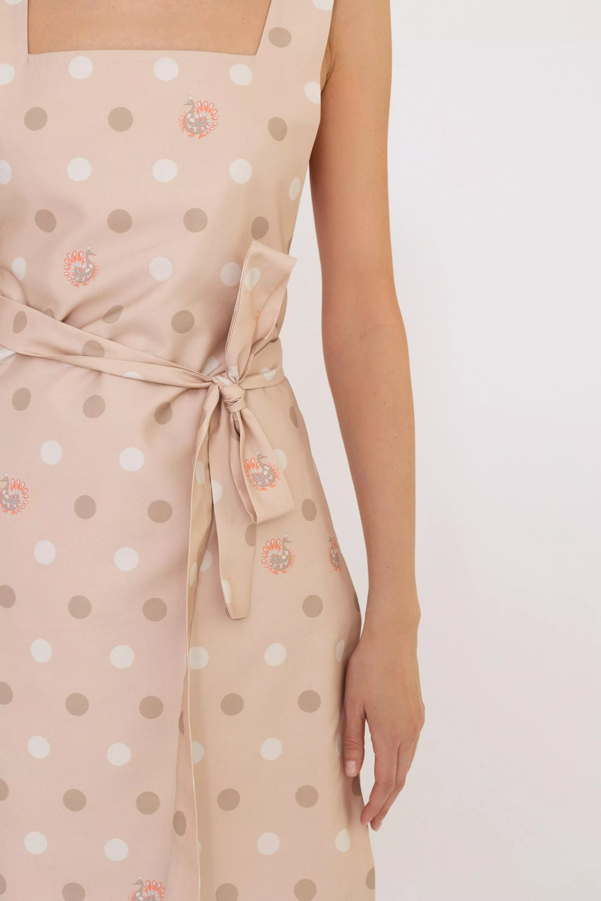 Фартук в сдержанных песочно-бежевых тонах фирменной палитры Mollen. Это не просто кухонный атрибут, а универсальный элемент одежды, изготовленный в форме платья. Фартук прекрасно исполняет свою функцию на кухне, но прекрасно подойдет и для прогулки на свежем воздухе. Благодаря дизайнерскому орнаменту, фартук выглядит стильно и отлично подходит к брюкам. Покрытие из нанопленки надежно защищает одежду от воды и грязи, при этом ткань остается мягкой и приятной. Покрытие выдерживает многократные стирки, а рисунок надолго остается ярким и контрастным.
