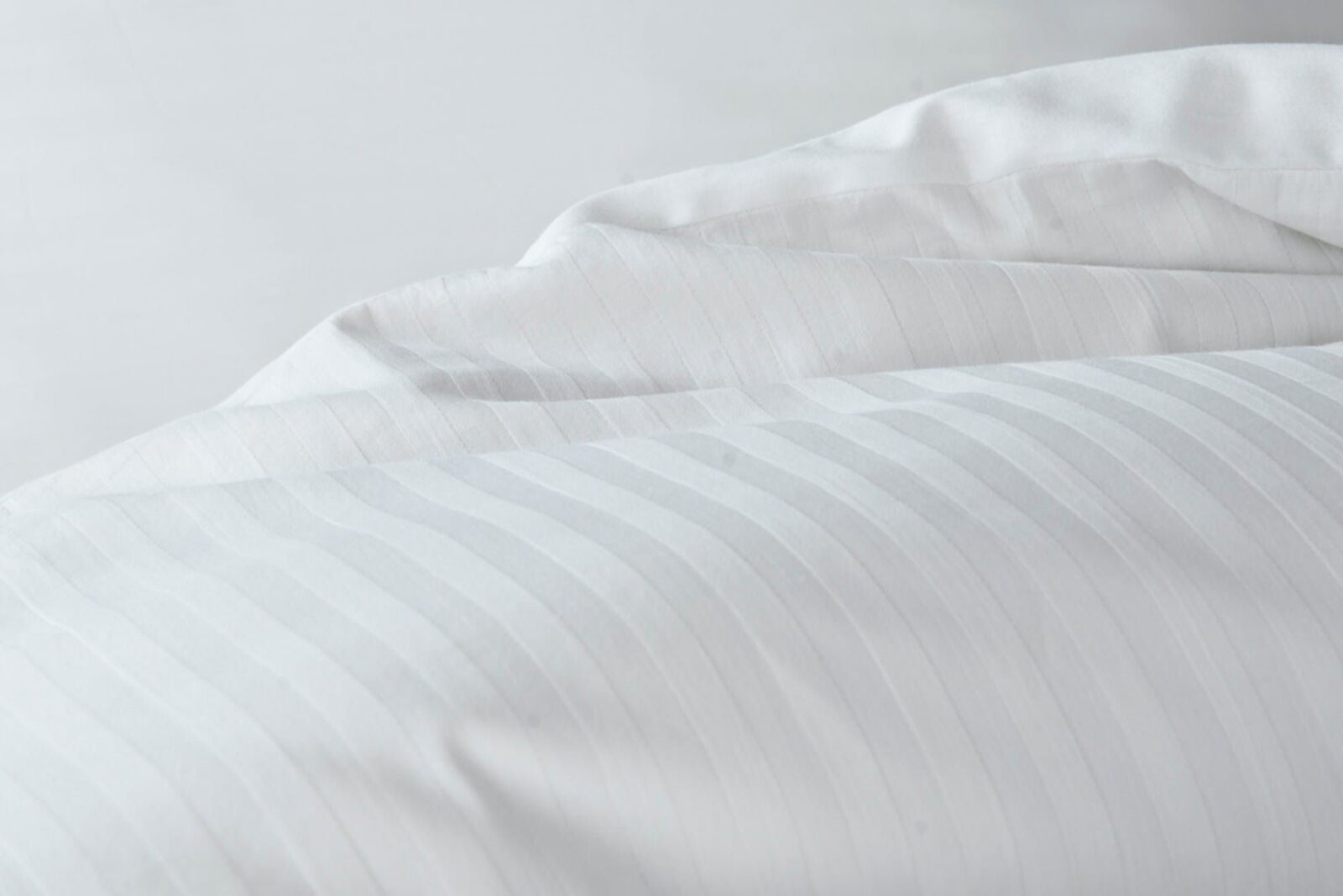 Страйп-сатин – это ткань с классическим жаккардовым плетением нитей, образующим чередование полос. В ее состав входит 100% хлопок, что обеспечивает двойной комфорт и исключительную мягкость материала. Одним из важных свойств ткани является ее способность сохранять форму. Даже при многократных стирках, она не вытянется и не потеряет характерный шелковистый блеск.