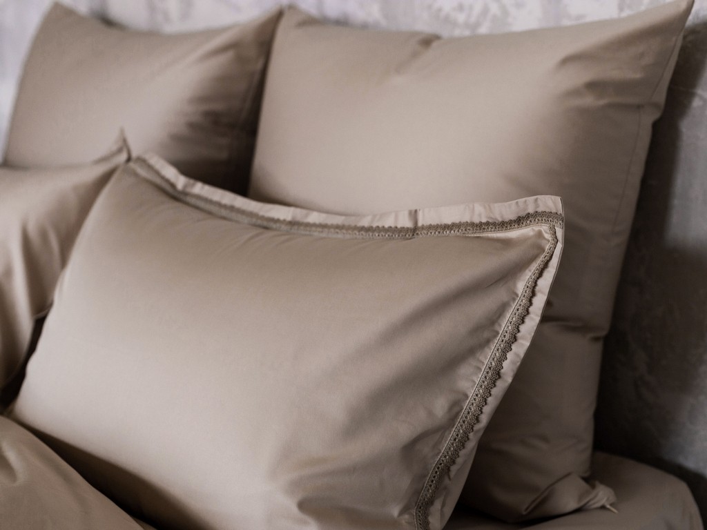 Наволочки «оксфордские», отделанные УЗКИМ БЕЖЕВЫМ КРУЖЕВОМ (на запахе).