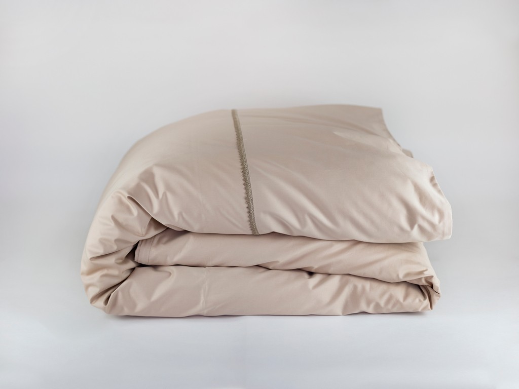 Пододеяльник на потайной молнии, отделанный УЗКИМ БЕЖЕВЫМ КРУЖЕВОМ.
