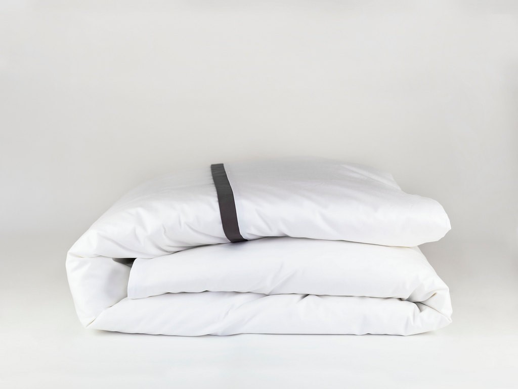Ткань: Cатин (Noble Sateen) Nm 100/100, 353 ТС, 100% COTTON, сертифицированный по OEKO-TEX® Standard 100 Цвет основной ткани: белый. Цвет отделки: темно-серый