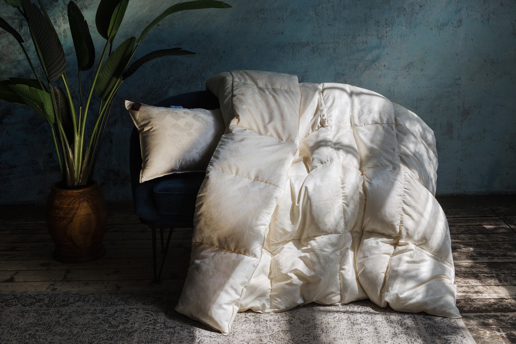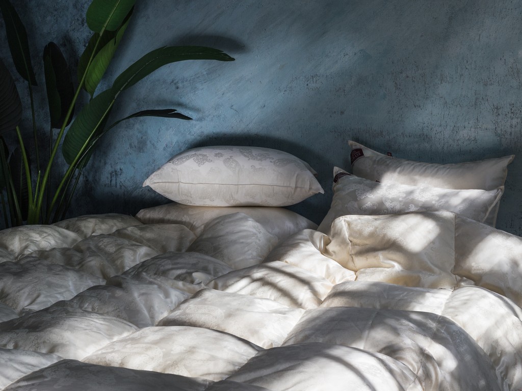 Сочетание сливочного пуходержащего жаккардового сатина PAISLEY из натурального 100% шелка и первоклассного пухового наполнителя повышенной упругости (Fill Power не менее 850 ед.) — это совершенный эксклюзив в мире постельных принадлежностей. Высокая плотность ткани и двойная отстрочка не позволят пуху мигрировать из изделия и не пропустят частички пыли внутрь. Эксклюзивные ткани создаются на единственном производстве в Европе — старейшей немецкой ткацкой фабрике — в лимитированном количестве. Для того, чтобы ткать шелковый пуходержащий жаккард с узором, необходимо обладать высочайшим уровнем мастерства. Кассетные одеяла ручной работы предназначены для использования в холодное время года. Каждая кассета размером 30х30 см наполнена отборным белым пухом вручную. Как и всякий эксклюзив, изделия этой коллекции требуют особого ухода при обслуживании: мы не рекомендуем их стирать, допускается только сухая чистка изделий.