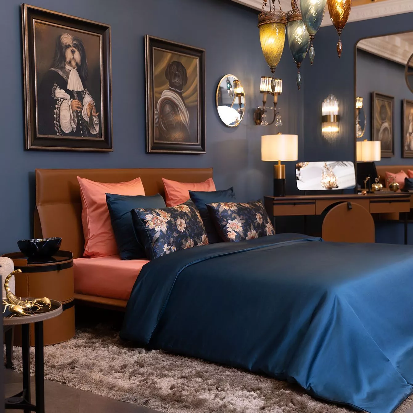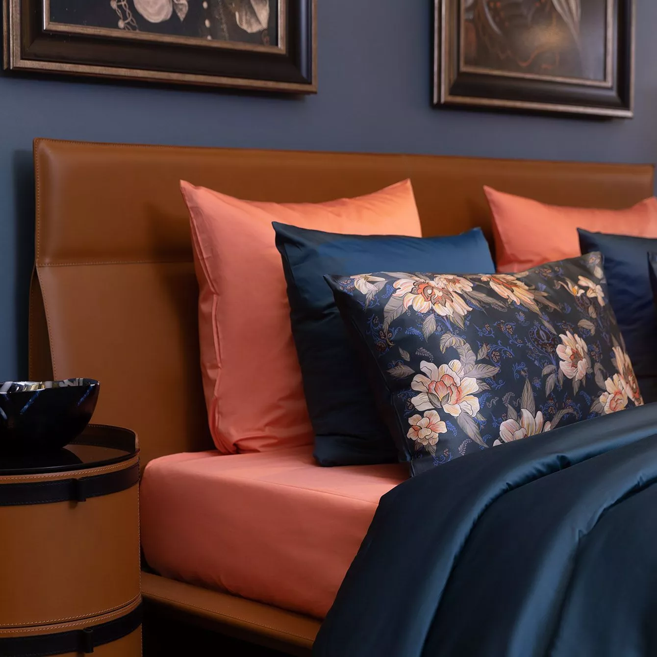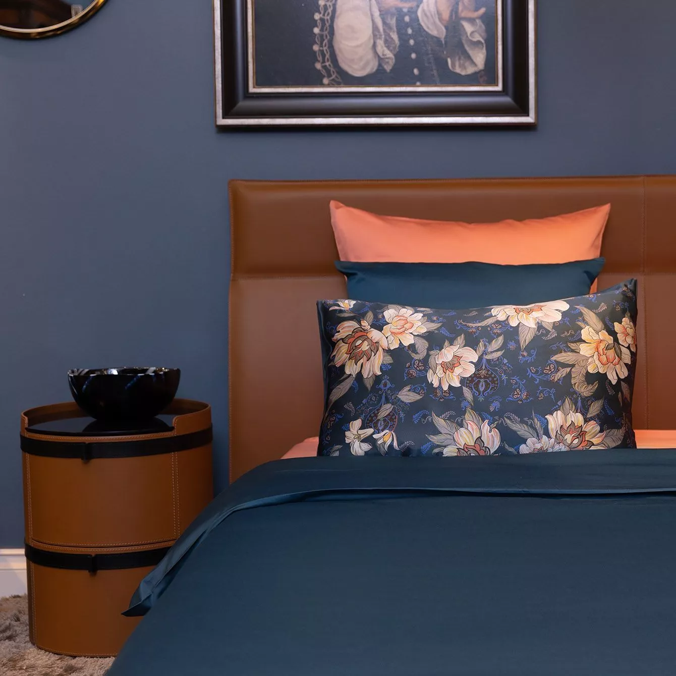 Наволочка из премиальных сортов шелка и с оригинальным принтом в темно-бирюзовых оттенках – ценная находка для любителей необычных дизайнерских решений. Узор на ткани – прекрасный лазоревый цветок, смотрится как живой, словно он только что распустился в предрассветном волшебном лесу. Современный дизайн, стилизованный под парадную роспись русских боярских палат, в сочетании с элитными сортами шелка и сатина, делает наволочку по-настоящему роскошным элементом интерьера.