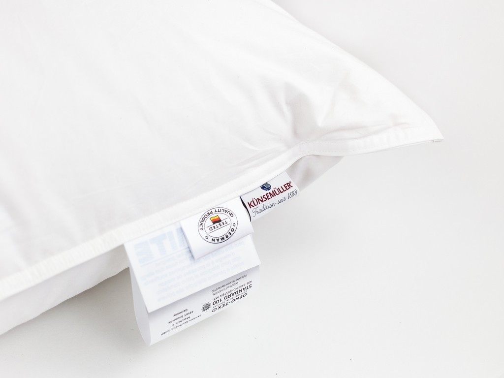 Классическая пуховая подушка Classic 30 Kissen Künsemüller, созданная из натуральных материалов, отлично поддерживает голову и шею, оставаясь мягкой и упругой одновременно. Она наполнена новым белым пухом и пером дикого гуся (70/30), обитающего в регионе Мазурия, Польша. Чехол подушки создан из плотного пуходержащего твила Bramscher Tuch, сотканного из длинноволокнистого Египетского хлопка. Переплетение пухонепроницаемой ткани действует как барьер, предотвращающий проникновение клещей, и, таким образом, обеспечивает дополнительную защиту. Благодаря конструкции и материалам, подушка обладает высокой гигроскопичностью, а воздух отлично циркулирует внутри изделия. Товар сертифицирован по международным стандартам OEKO-TEX® и Nomite.
