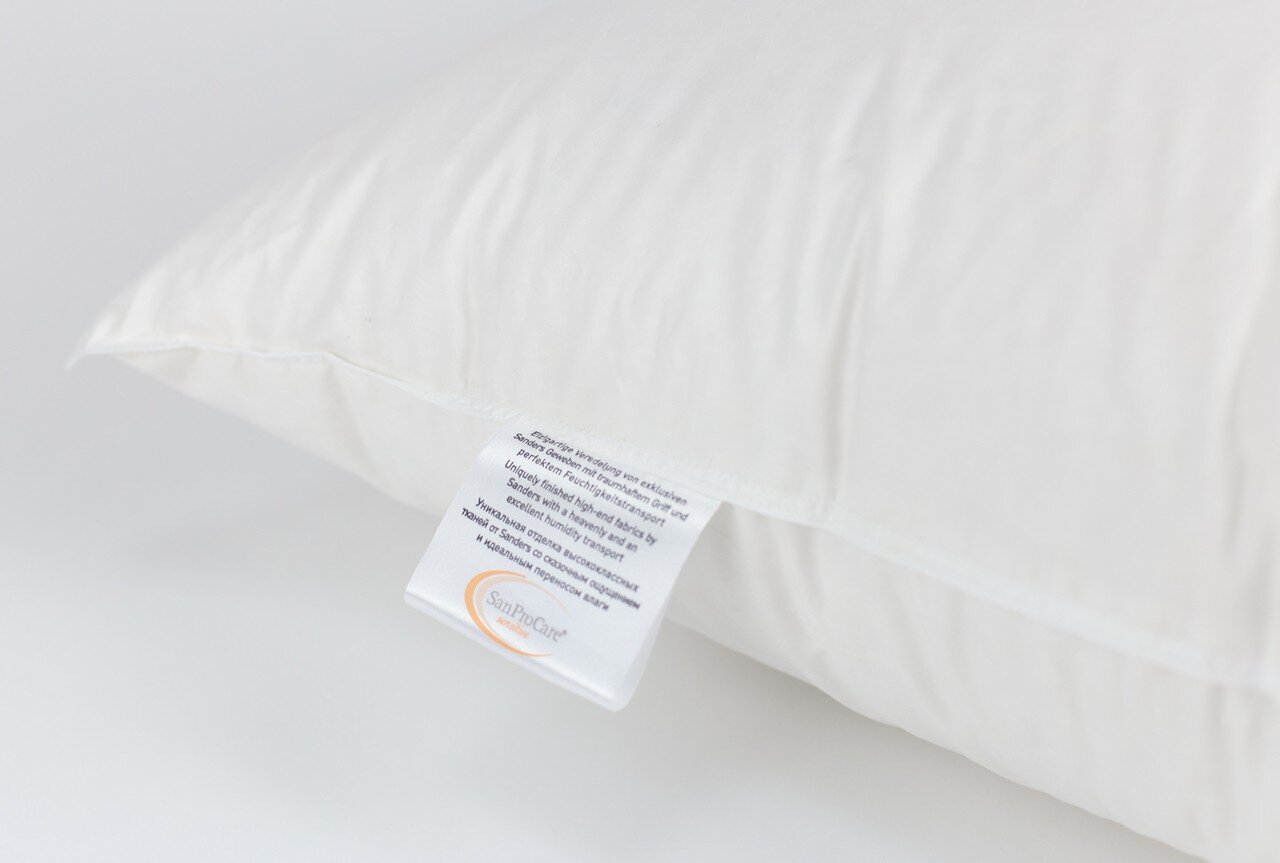 Супертонкий мако-батист (Mako-ultra fine batiste) из 100% египетского хлопка, прошедший финишную обработку SanProCare® Sensitive позволяет ткани достичь состояния «пуховой мягкости». Сертификат OEKO-TEX® Standard 100 – это стандарт безопасности текстильных изделий. Наполнителем для этой эксклюзивной коллекции служит пух повышенной упругости, который при малом весе обладает особенной пушистостью и, тем самым, лучшей теплоизоляционной способностью.
