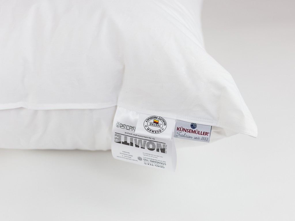 Трехкамерная пуховая подушка Canada Trio Kissen Künsemüller имеет продуманную инженерную конструкцию, позволяющую хорошо поддерживать голову и шею на протяжении всей ночи. Она наполнена 100% гусиным пухом, заполняющим две внешние камеры. Используется пух канадского гуся 1 класса, выращиваемого в естественной экологичной среде, что обеспечивает мягкость и нежность изделия. Упругость подушки и идеальная поддержка головы достигаются наличием внутренней камеры, наполненной гусиным мелким пером 1 класса. Особую роскошь подушки подчеркивает чехол из батиста — изысканной хлопковой ткани Bramscher Tuch. Плотное переплетение пуходержащей ткани действует как барьер, предотвращающий проникновение клещей, и, таким образом, обеспечивает дополнительную защиту. Благодаря конструкции и материалам, трехкамерная подушка обладает высокой гигроскопичностью, а воздух отлично циркулирует внутри изделия. Товар сертифицирован по международным стандартам OEKO-TEX® и Nomite.